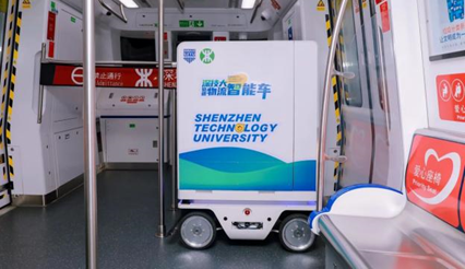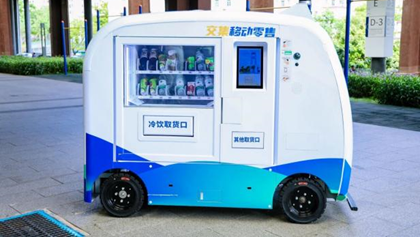 2025年9月投入实际运营的无人售货车(左)和轨道物流车(右)