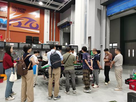 活动尾声,培训基地专家教师团队人员在张国凌老师的带领下,实地参观了赛车工作室及智能网联实验室、无人机实验室,近距离观摩了学生的设计作品与竞赛车辆,对学院的实践教学成果给予了高度评价。