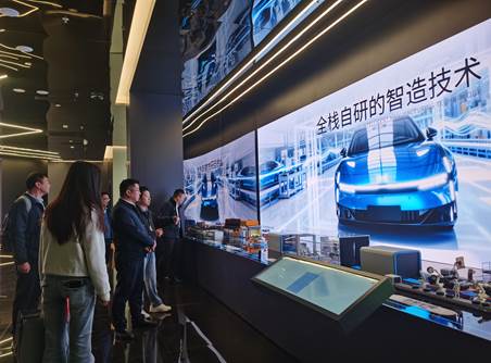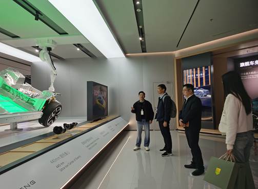 在企业方的引导下,罗钦书记一行先后参观了小鹏汽车展厅、飞行汽车研发展示区、品牌4S店及总部核心办公区域。走访团队近距离观摩了小鹏汽车最新款智能电动汽车、前沿飞行汽车技术成果及智能化生产运营体系,详细了解企业在新能源智能汽车领域的技术研发实力、产品布局及未来发展战略,对小鹏汽车秉持创新驱动、引领智能出行变革的理念给予高度评价。