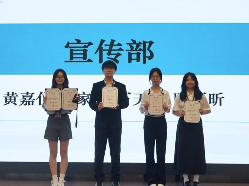 在各部门干事授牌授聘仪式环节,新干事们走上台前,从各部长手中接过象征责任与使命的工牌和聘书。