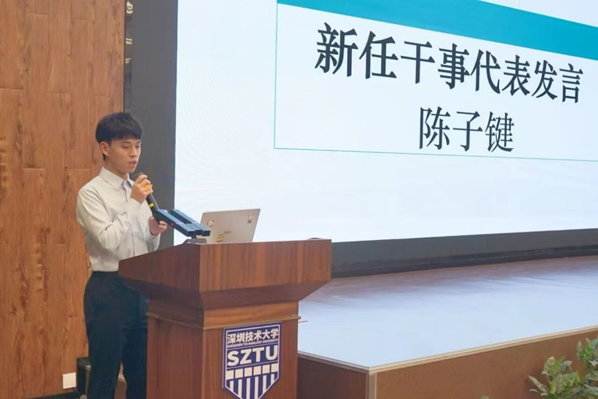 技术部的新成员陈子健,以新任干事代表的身份进行发言,并在发言中表示作为工作室的新生力量,他将以饱满的热情和严谨的态度投入到工作中,虚心学习,不断提升自身能力,积极为工作室的发展贡献自己的一份力量,与团队共同成长、共同进步。