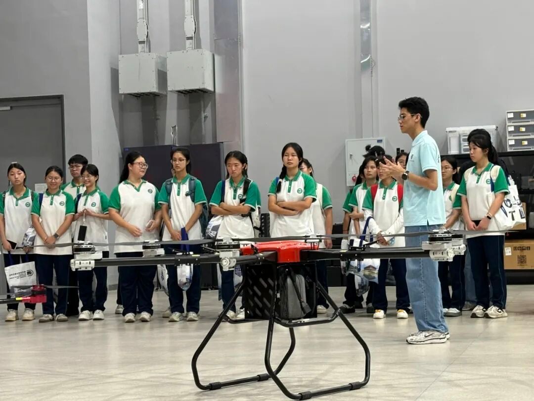 11日下午,在学院第四期青马工程学员们的悉心引导与带领下,广宁中学的同学们依次走进学院颇具特色的无人机创想设计空间与无人机智能制造实验室、赛车工作室、顺丰智慧物流实训基地等。场所内,学院无人机工作室负责学生、青马学员段涵骞、李烁为同学们介绍讲解无人机构造等知识,同学们近距离、亲身去感受了无人机模型“精妙的结构设计”、“先进的飞行控制系统”等独特魅力,并纷纷表现出对无人机领域的浓厚兴趣。